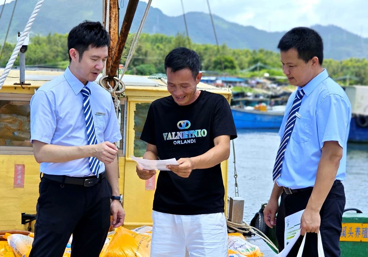 邮储银行阳江市分行为渔民介绍海洋牧场相关金融产品