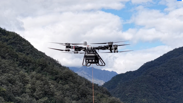初冬,正是草果丰收的时节。在云南怒江州贡山县独龙江乡巴坡村,一阵嗡鸣声划破了峡谷的静谧,草果种植户迪志光仰头注视着一架无人机吊着满满一袋红艳艳的草果,从半山腰的种植基地起飞,轻盈地飞越深涧,朝着山脚下的合作社稳稳而去。